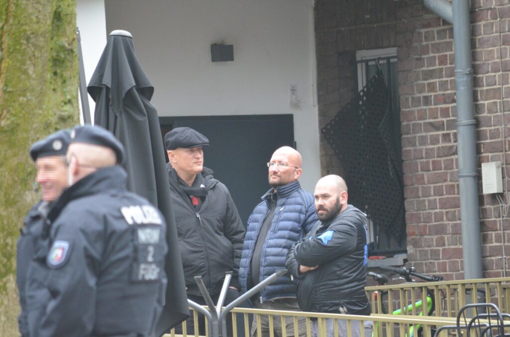 V.l.n.r.: Stefan Rasche, Sven Gustavsohn und ein weiterer Neonazi bei einer AfD-Kundgebung am 16.03.2024 im Zoopark in Düsseldorf © Antifa-Infoportal Düsseldorf